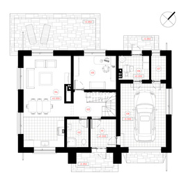 Suprojektuotas erdvus garažas vienam automobiliui.