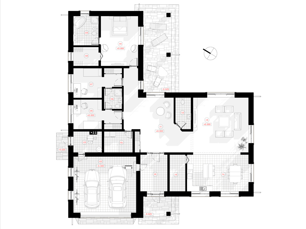 Vieno aukšto namo projektas su dviviečiu garažu – Rapolas | NPS Projektai